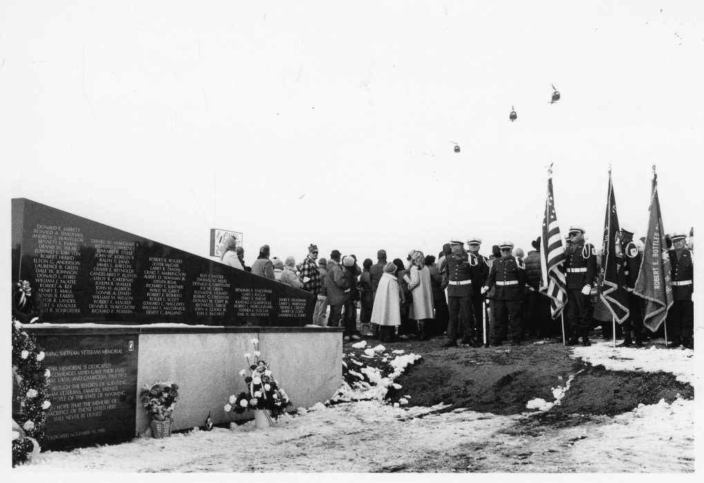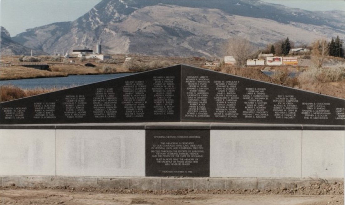 On September 16, 1985, the Cody City Council agreed to provide property for a new Wyoming State Vietnam War Memorial. The proposed memorial would include names of all Wyoming soldiers killed or missing in action during the Vietnam War carved into black granite, each listed with their respective dates of death or disappearance.